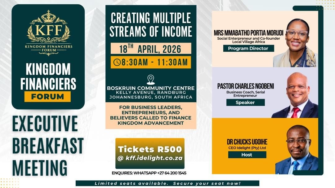 He is the visionary behind the Kingdom Financiers Forum, a transformational platform dedicated to equipping entrepreneurs, professionals, and leaders with the mindset, principles, and strategies required to create wealth and deploy it for kingdom impact.